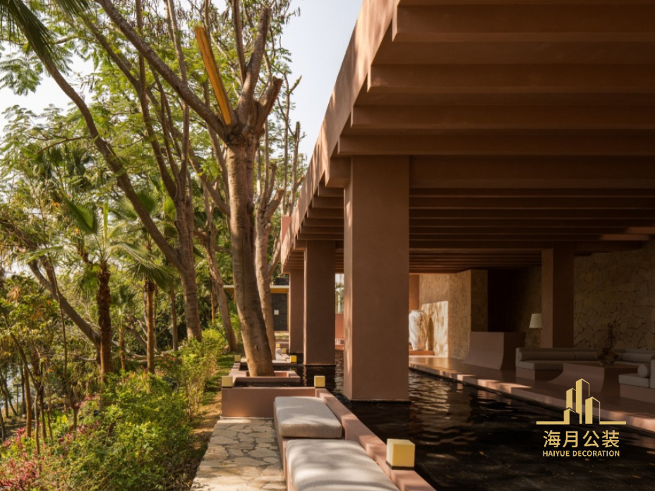 建筑依山势而建,我们将自然界中的“石块”置于山野林间,用大体块构建三层空间,让建筑隐逸于山林之间,忽近忽远,身栖雨林,心生缥缈。装修设计中,我们选取了简约对称的呈现方式,由中心泳池展开,将“山形”建筑环绕于两侧,山水流转,与环境相融,自然穿插其间。入口处是层层递进的阶梯,端景处的绿植,摇曳的雨林风情...
