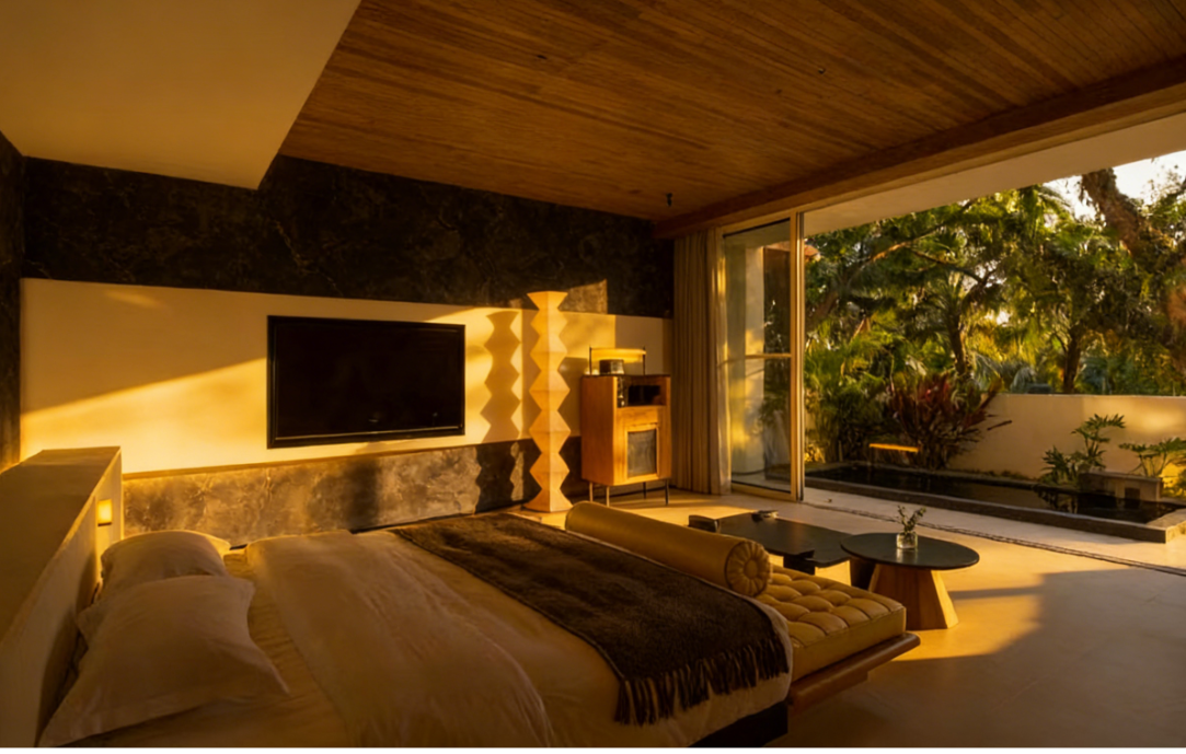 当城市的晚高峰还在车流里拥堵,当写字楼的灯光还在熬着深夜的稿,这座藏在原生林里的野奢客房,已经被黄昏镀上了一层蜜色的柔光。它不是简单的 “酒店房间”,而是一处把「野趣」与「奢华」揉进肌理的疗愈场域 —— 当你踩过庭院微凉的青石板,泡进下沉式汤池的那一刻,所有关于 “逃离城市” 的想象,都有了具体的模...