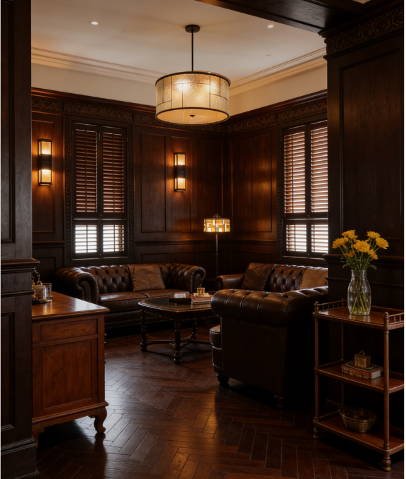 会所整体沿用层高优势,打破常规空间的压抑感,赋予空间通透开阔的呼吸感,这正是老钱风格中“低调奢华”的核心表达——无需堆砌装饰,仅靠空间尺度便彰显气度。夜间时分,挑高的天花板让灯光有了更多流动的可能,从嵌入式射灯到复古吊灯,光线层层递进,既勾勒出空间的纵深感,又为白棕主色调蒙上一层温柔滤镜,让白色的纯...