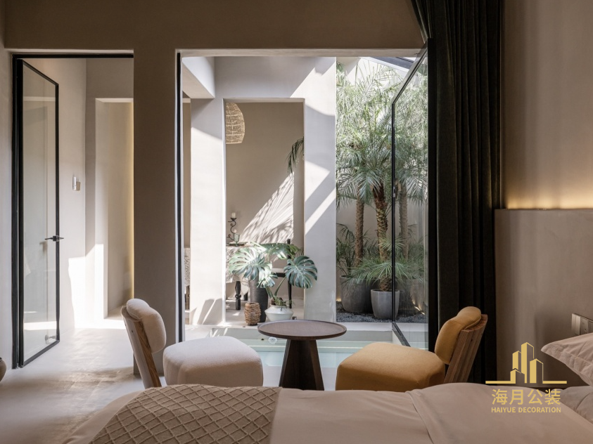 在成都大邑县这片饱含自然灵韵与人文底蕴的土地上,精品酒店的装修设计以现代简约与自然融合为核,书写独特旅居故事,为公装设计赋予全新生命力。酒店大量选用原木材质,从窗框的温润纹理到家具的自然质感,每一处木作都似从大邑县山林中采撷而来,带着原生的温度。浅墙漆如轻柔的底色,晕染出宁静氛围,亚麻窗帘随风轻摆,...