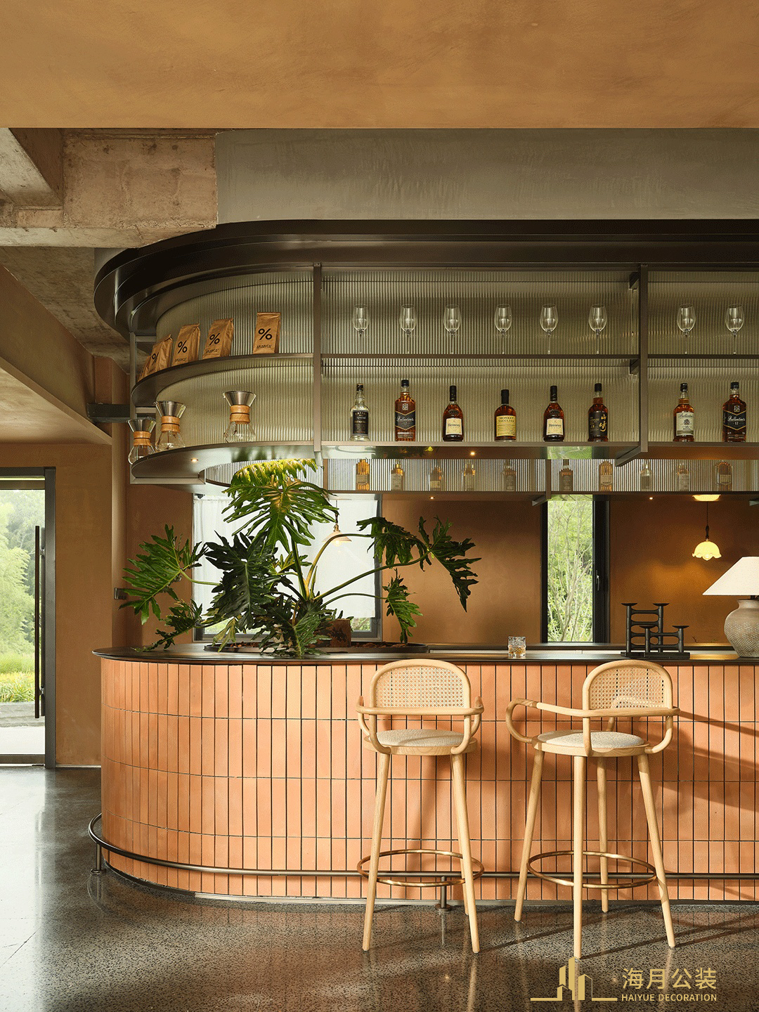 自然的疗愈是心之所向,久在都市樊笼,渴望去到山野徜徉呼吸,在这个民宿项目放松修养身心。自在的灵韵少不得自然植物的装点。民宿公区的水吧台上盈满绿意,贴近大地的棕色调,如同生活在自然一般畅快,在交流片刻间隙眺望窗外自然风景,时间缓缓,美好顿生。深深浅浅的棕色是空间的主色调,木质材料的大量使用带来质朴侘寂...