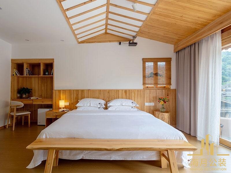 民宿设计空间,视线会先被屋顶裸乘的木梁吸光影,让"自然"成了空间的底色。