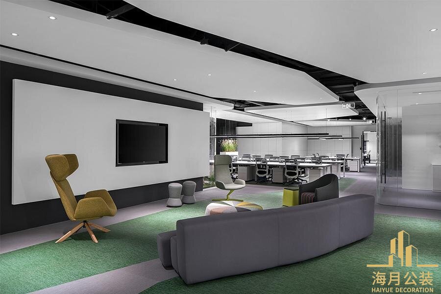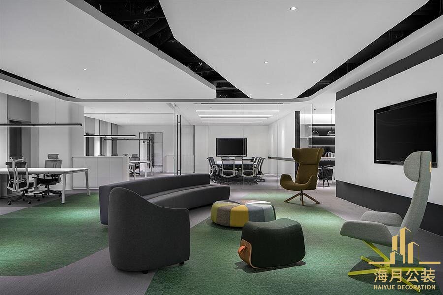 办公室装修内,精心规划了会议室,洽谈区,休闲区等多元功能空间,以应对不同场景下的办公需求。会议室采用可调节的智能影音系统与灵活拼接的会议桌,既能满足小型团队的头脑风暴,也能承接多人参与的商务会议,玻璃隔断上的磨砂贴膜设计保障了会议的私密性,同时不影响空间的采光效果。洽谈区则以柔和的弧形沙发与质感茶几为主角,搭配暖色调的灯光与柔软的地毯,营造出轻松惬意的沟通氛围,让商务洽谈在舒适的环境中更易达成共识。休闲区的设计则更注重松弛感,柔软的沙发,简约的书架与便捷的饮品台,构成了一个远离工作压力的"充电站",员工可以在此短暂放松,交流互动,重拾工作活力。