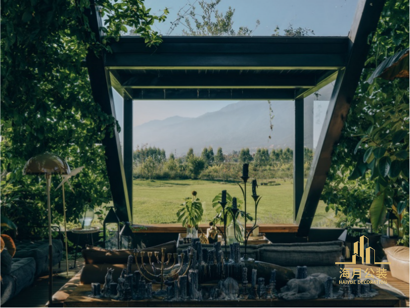如果说庄园的公区游走在花园与山水之间的一系列动态体验,展示了如何把自然生活方式拓展到山水尺度之中;那么庄园客房最终又把客人的度假生活拉回到宁静的院落和植物里。整个庄园酒店只有六间客房,分布在主体建筑的不同角落,每间客房在装修设计中房型都不一样,但都有一个共同的特点—每间客房都带有一个独享的私密院子和花园。客房的边界在空间设计中不止于室内的落地门窗,院子和花园才是每间客房真正的起居室,触手可及的大树和花草是最生动的软装,每间客房都像住进一个活泼泼的自然天地里。