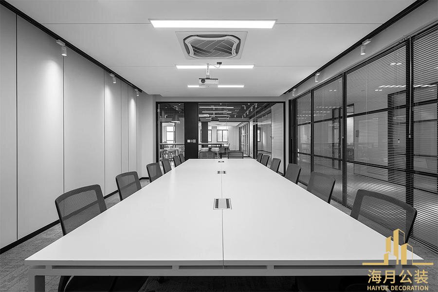 会议与休闲空间的打造,更注重场景化适配与氛围感营造。小型研讨室采用黑框玻璃隔断与专业隔音材料,搭配可移动拼接桌椅,灵活适配4-6人的部门头脑风暴,项目对接等场景,兼顾私密性与空间灵活性;大型会议室配备悬浮式线条灯,高清投影与音响系统,长条实木会议桌搭配舒适皮质座椅,可容纳20人以上开展全员会议,客户接待等重要活动,尽显企业实力与待客之道。休闲洽谈区则以浅木色地板铺垫温润基调,活力橙休闲椅与绿植盆栽相互映衬,搭配简约茶台与软质沙发,为员工提供放松身心的一隅,让创意在松弛的氛围中自然迸发。