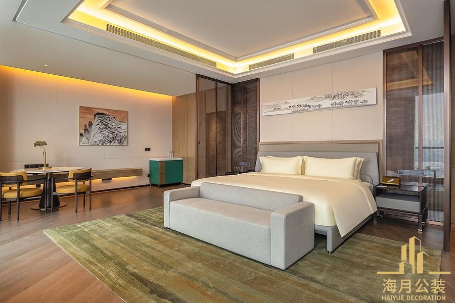 从标准客房到总统套房,四川海月公装建筑工程有限公司始终以精细化的工程管控,打磨每一处细节:定制化的智能照明系统可根据场景调节明暗,干湿分离的卫浴空间配备高奢卫浴品牌,而隐藏式的收纳设计则让空间保持整洁秩序。我们深知,真正的奢居不仅是视觉的盛宴,更是从踏入空间那一刻起,便被妥帖照顾的安心感。