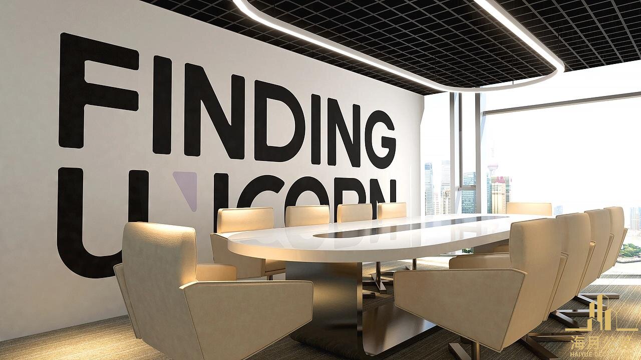 全景落地窗引入自然光线,搭配白色椭圆会议桌与浅米色皮质座椅,既保证商务洽炎的正式感,又通过开阔视野缓解会议压力;背景墙以品牌LOGO为视觉焦点,让空间在现代感中强化品牌属性,适配项目汇报,方案研讨等多元场景。
