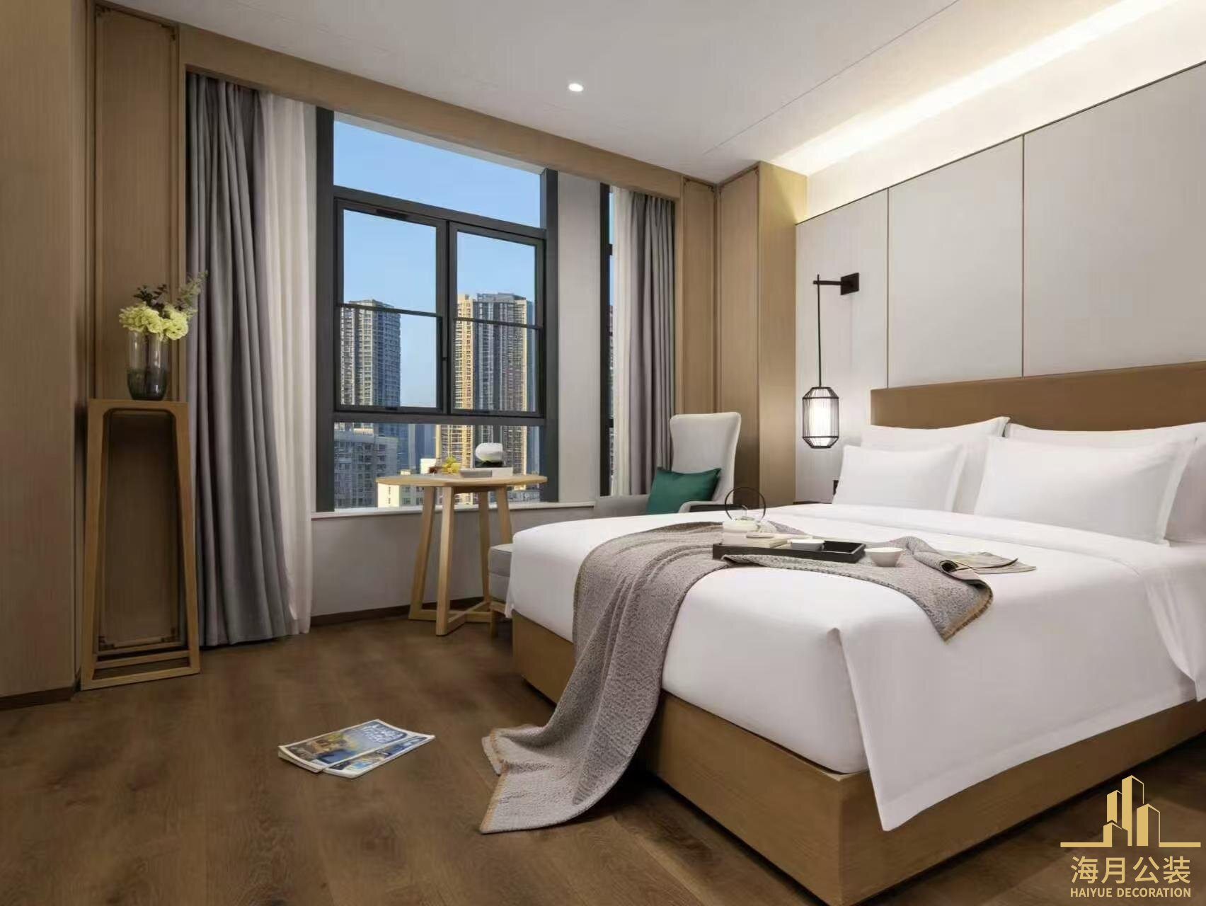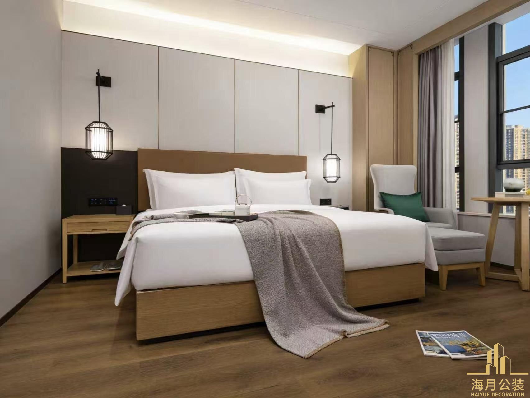在细节构造与氛围营造上,设计同样围绕分区展开。休憩区的灯光采用局部重点照明,床头壁灯与氛围灯带精准打光,避免强光直射,搭配温暖木色床头背景,快速营造放松休息氛围;功能区则以均匀基础照明为主,搭配可调节台灯,满足不同场景下的视觉需求;景观区通过落地窗的低窗台设计,结合软装坐垫,打造出可临时休憩的观景角落,同时通过窗帘与玻璃的材质对比,增强空间层次感。