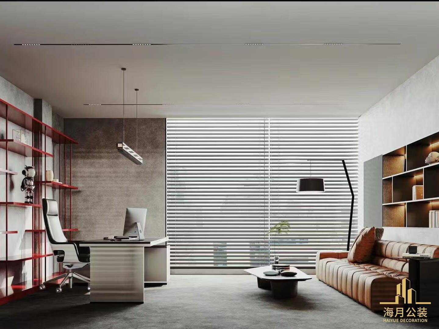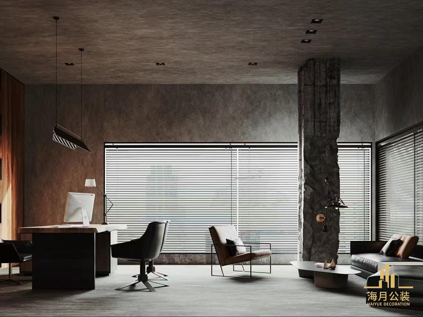 木质元素的加入则成为调和剂。温润的木饰面墙面、实木办公桌椅,以自然纹理和温暖色调,软化工业风的硬朗,营造出刚柔并济的办公氛围。百叶窗设计巧妙,既呼应工业风的复古感,又能灵活调节光线,让空间在明暗变化中,展现独特的层次感,满足办公区域对光线和隐私的双重需求。