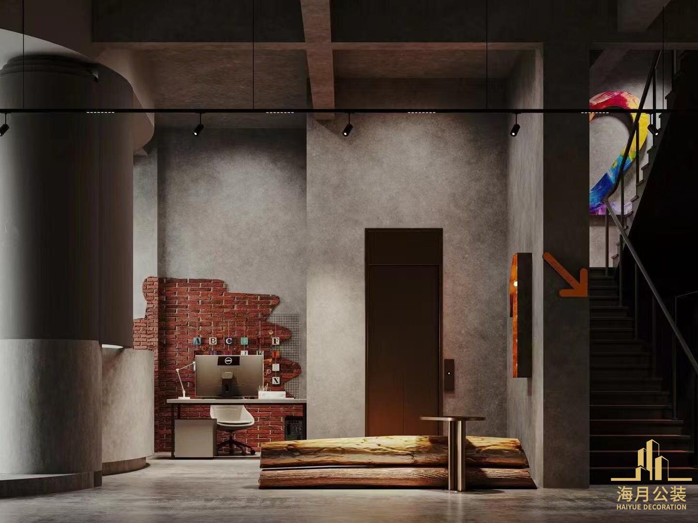 工业风设计是这些作品中的亮点。水泥墙作为工业风标志性元素,在空间中大面积运用,保留混凝土原始质感,呈现出未经修饰的粗犷美,仿佛在诉说工业时代的故事。搭配裸露的金属构件,如灯具支架、楼梯扶手等,金属的冷硬与水泥的质朴交融,构建出硬朗的空间基调。