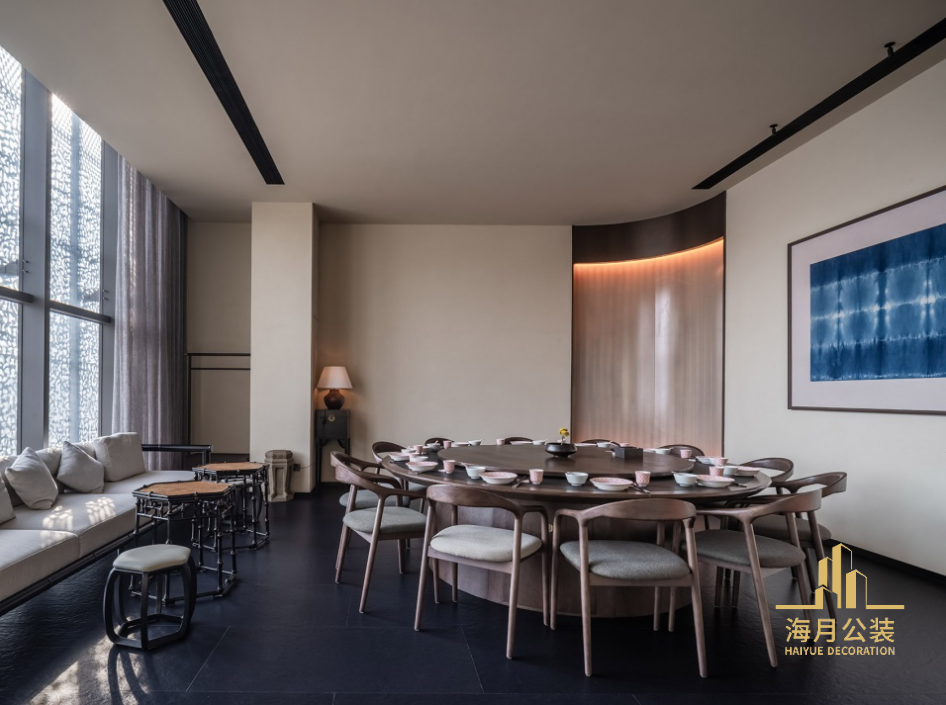 这一效果并非装饰性的“设计结果”,而是建筑立面与光环境互动下的“自然发生”。它赋予了空间一种与真实自然相仿的气息,为室内注入“户外的自在”。光在这里不再是附属,而是装修设计语言的主角。它贯穿整个狭长空间,借由材质、结构与光影关系的精微处理,将场所气质逐层展开。