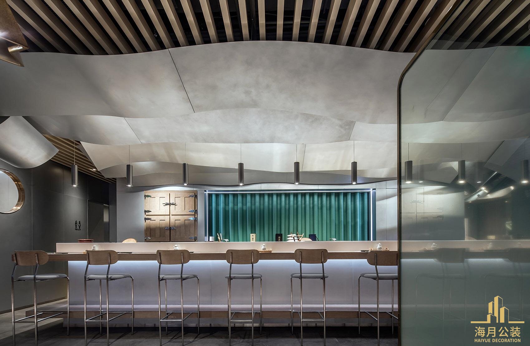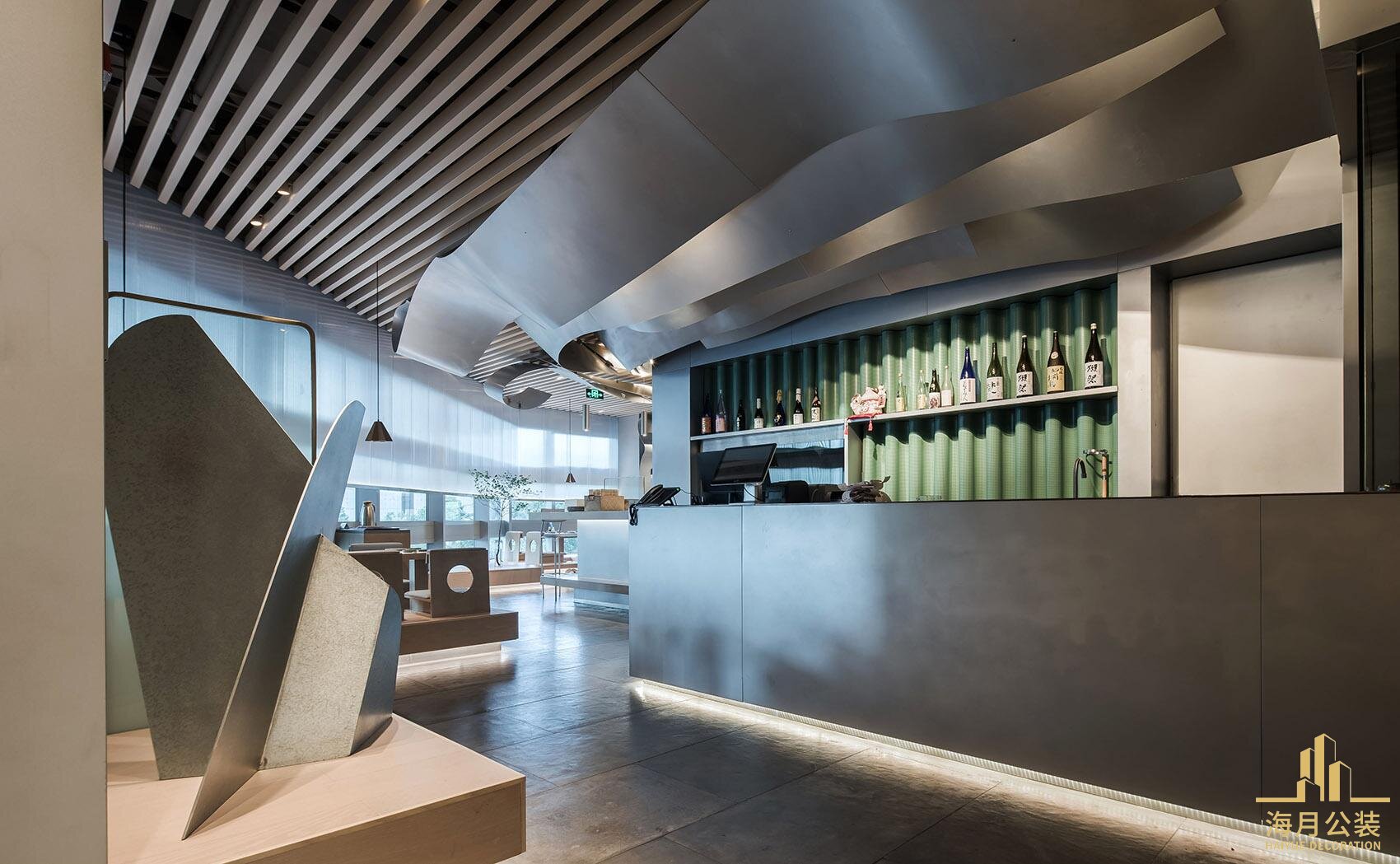 金属与玻璃等现代材质的融入,为空间注入时尚感与精致度。金属材质打造的灯具、桌椅支架,其冷硬的质感与浅木色、灰色形成材质对比,碰撞出独特的美学火花,同时展现出工业风的利落;玻璃隔断的使用,既划分空间又不阻隔视线,保证通透感的同时,增添了空间的现代韵律,使整个日料店在简洁中透出大气与时尚,契合现代都市人