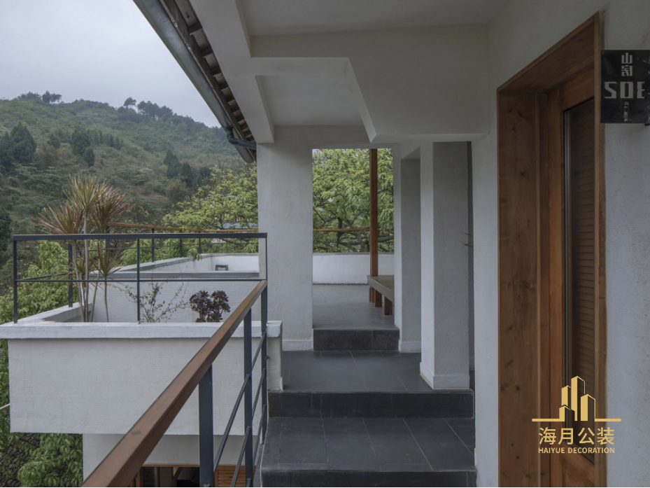 也许,通过山地建筑的特质,内部的多重动线梳理,可以试图唤醒当初孩子们在这一高高低低的场所中游玩,嬉戏的场景;以及通过攀登,环绕,遮挡,凝视从而获得周围不同景观的视野。这两者均是从普通对象的呈现来激发情感,便更有价值。改造从重新梳理动线开始,南楼由于地势较低,加之古树环绕,如果从南楼进入,通过楼梯爬升,会有一种逐渐明亮的上升的氛围变换。为强化这种氛围的转变,西楼的二层在拆除后,在装修设计中决定不进行客房扩建,而是打通视野,仅搭建一单坡屋面。
