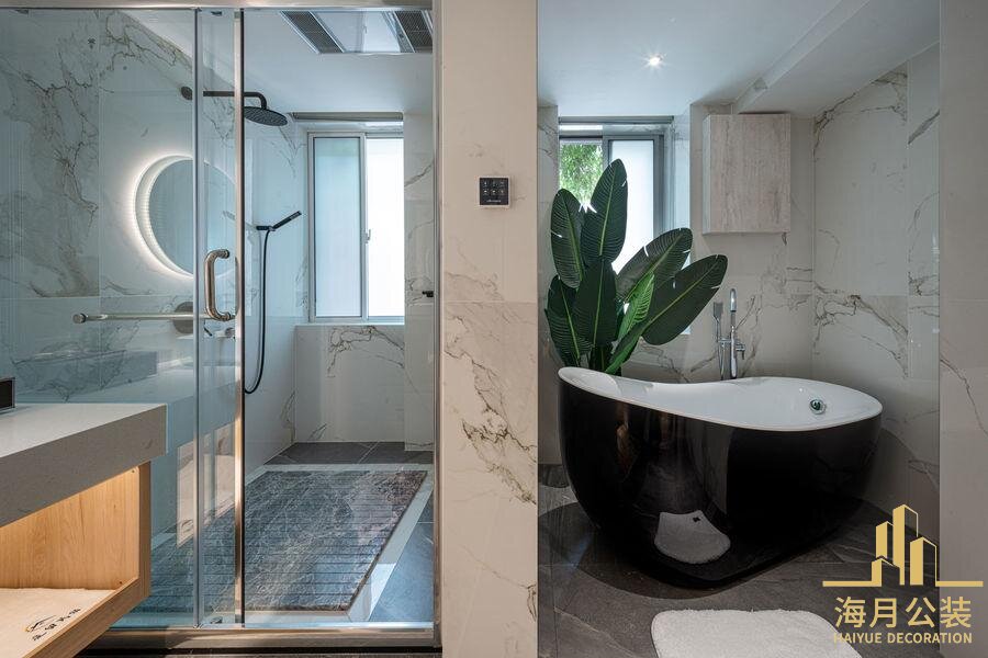 卫浴间是轻奢与实用的完美结合,大理石纹理自然铺展,独立浴缸静立窗边,可一边泡澡一边仰望天空。干湿分离的淋浴区设计贴心,暖光映照下,洗去一日风尘,重拾身心轻盈。