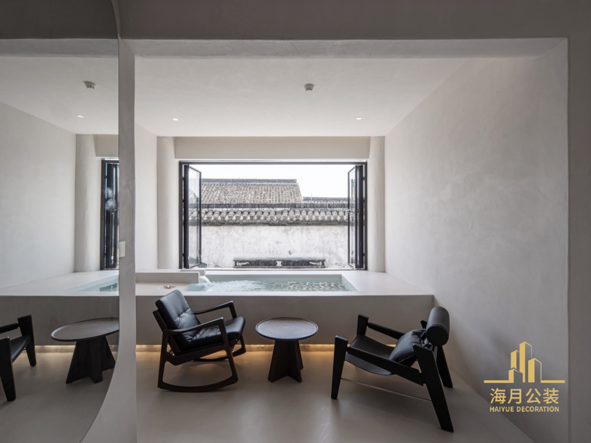 宾临城·江南赋设计师民宿业态是通过将现有建筑进行改造提升,把古镇传统建筑与现代艺术空间融合在一起,通过装修设计打造成集共享空间、展厅、下午茶、泡池、住宿、酒吧、咖啡厅等于一体的差异化超强IP体验高端民宿,设计风格既能体现江南水乡的文化韵味,又能让旅人感受到生活场景化的现代艺术空间。