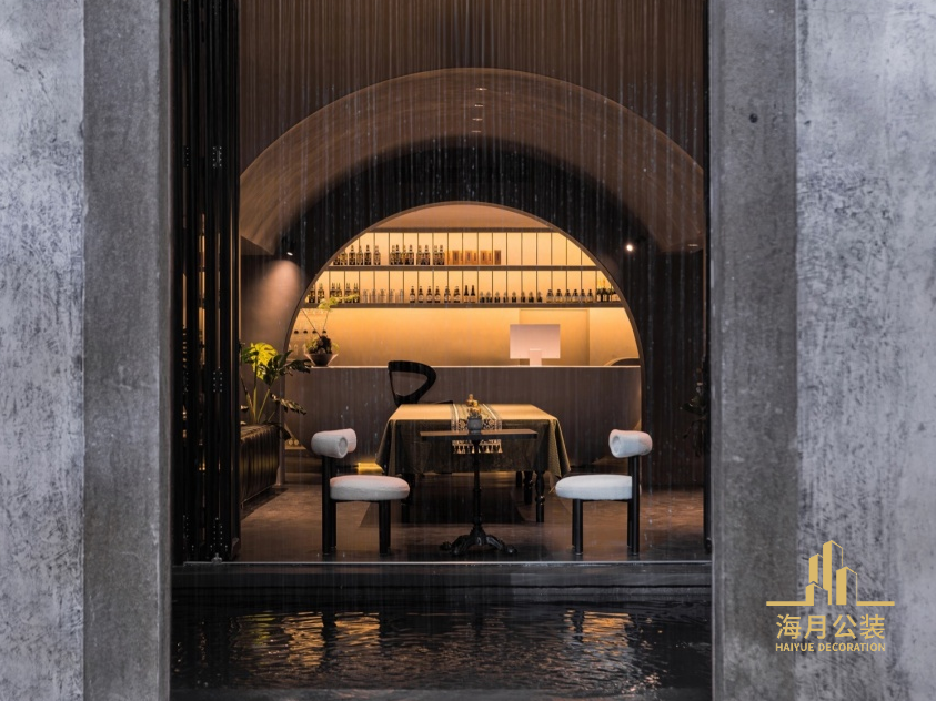 民宿整个空间是流动的,空间设计做到一步一景的精细化场景空间:大厅的设计概念来源于摇曳在南浔河上的乌篷船,吧台为船,大厅为三个乌篷,结合厅外的四水归堂和门头雨幕,整个空间形成了东大街上最亮的打卡点。