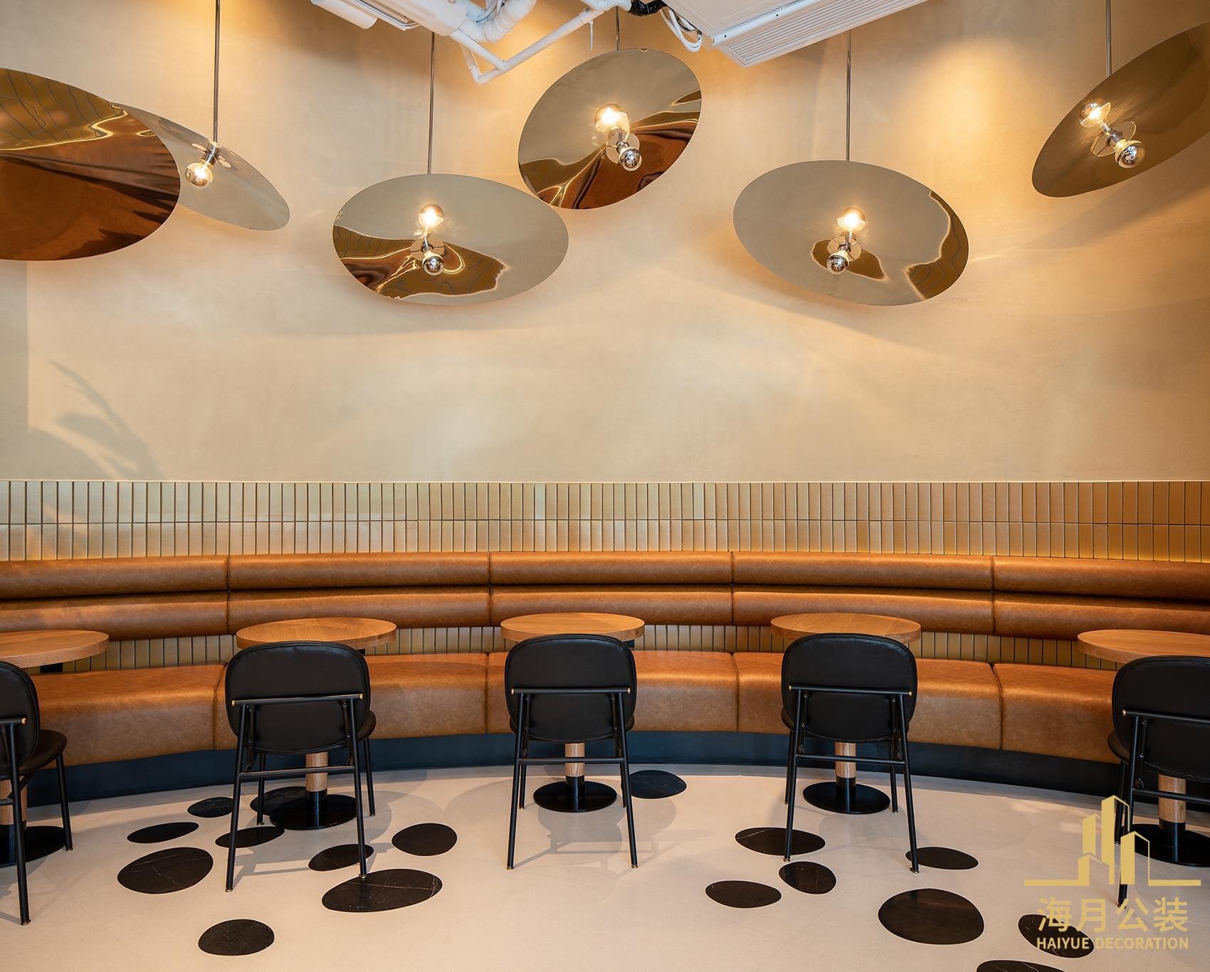 视觉符号成为品牌传播“无声语言”。独特造型金属吊灯,如艺术装置悬浮空中,兼具照明与装饰,成为顾客拍照分享的“打卡点”;墙面创意手势装饰,以简洁线条、灯光点缀,传递品牌个性,加深顾客印象;吧台区,菜单展示屏清晰呈现产品,专业设备陈列(咖啡机等)强化“现制茶饮”专业感,既实用又构建场景化营销-顾客能直观感受茶饮制作过程,提升消费期待。这些视觉亮点相互呼应,将品牌元素融入空间每个角落,强化记忆点,助力品牌在新都茶饮市场脱颖而出,吸引年轻消费者主动传播,扩大品牌影响力。