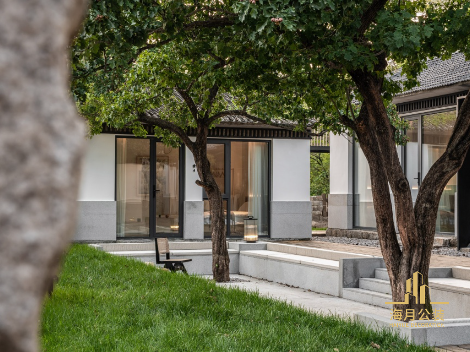 原始场地是一方典型的三合院北方民居院落。老建筑在经历脱胎换骨后,整体装修设计风格以山居美学为灵感呈现,成为了为住客提供兼具传统民居特色与当代舒适享受的下榻空间。当远离城市的繁华与喧嚣,才能真正领略到来自山野自然的馈赠,也终于理解了陶渊明所言“悠然见南山”的避世情怀之精妙。