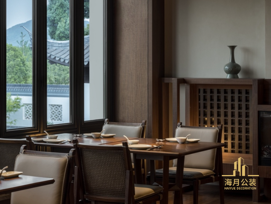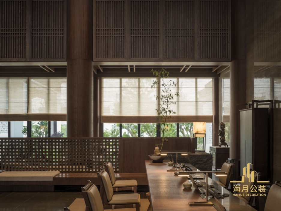 受业主浙江春晖集团及运营方的委托,我们接手为东山大观酒店一案进行室内空间的整体塑造。在介入项目后,我们与酒管方共同探讨酒店方向和后期运营的合理性,参与酒店品牌的共建,达成共同目标与理念认同。针对酒店定位及调性,客群定位,以及成为具有唯一性的目的地型度假酒店。 针对目标客群对精神文化的需求,如何在有限的时间内,尊重建筑原有形制的同时,寻求在地文化与现代美学之间的平衡,成为设计团队在装修设计中亟待解决的问题。谢灵运描写东山山野生活的《山居赋》成为联系古今生活方式的纽带,赋中“去饰取素,傥值其心耳”,意为 “去掉修饰的,不加以雕琢,只有最本质纯粹的,才最接近本心”。和项目定位的核心理念穿越千年不谋而合,也成为设计团队设计的核心方向。 “去饰取素”的呈现,演变为由节奏引发的情绪共鸣。从建筑与室内的纯粹性、内外景致的连续性、家具系统与物件的秩序性,探究人与物、物与空间、空间与环境之间的共生关系。边界即介质。当人的视线落位在公共区域——酒店大堂,建筑以古典园林四合院之态对称划分。临湖的大堂吧,以跃层高挑的中庭结构,延伸着空间立面的舒展与张力。通过装修设计在包裹与敞开的围合之间,满足功能与审美的需求。延续建筑关系,形成南北对称的功能区域,南为酒吧区,北为下午茶区,铺就平和温善的情绪氛围。自然光成为连接内外的媒介,洒下的斑驳阳光穿跃至格栅化的玻璃木窗,描绘着万物生长。四季花艺置于南北之间的中央区域,模数化的内在体块融合、穿插、分隔与叠加,使得室内空间趋于“化零为整”,连同阵列的方体灯构成内外光景的统一。让景于山湖,赏山水风光。 客房沿湖而建、面湖而居,质朴之感与公共区域一脉相承。在装修设计中选用来自本地古代官服的刺绣织布挂画,赋予空间纯粹的艺术感。清雅木质联结东山的自然诗境,化为隐于山野的自在闲适。三角、圆的几何秩序与数字的模数关系,以点线的布局、沉稳的色彩、简洁的造型、考究的细节与竹、藤、木、皮等天然的材质,呈现家具系统与物件的秩序性,可见设计团队对传统历史文化的挖掘与转化。