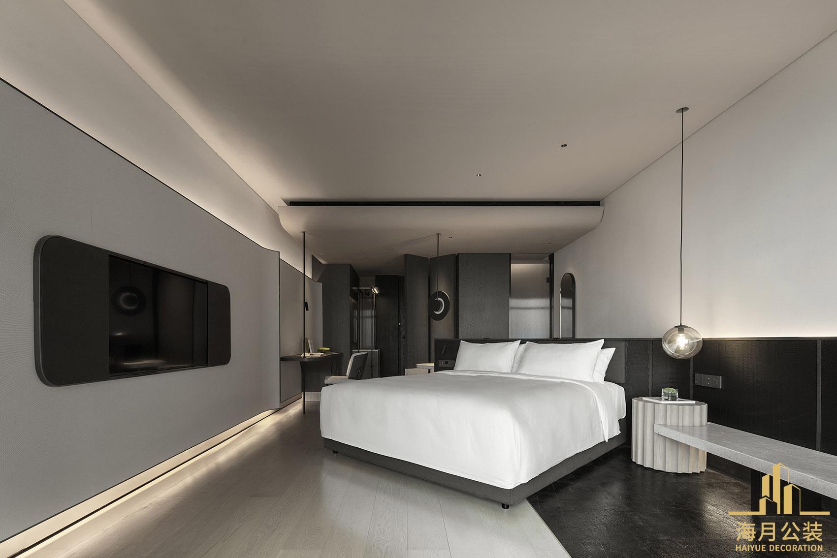 酒店装修深谙色调的魔力,以低饱和的黑白灰为主色调构建空间基底。白色,并非纯粹的亮眼白,而是带着柔和灰度的米白、乳白,如同武侯祠清晨的薄雾,轻柔地铺满墙面与家具;黑色,是沉稳的深灰黑,似锦里古街夜晚的石板路,低调又蕴含故事;灰色,从浅水泥灰到深炭灰渐变,像城市天际线的过渡,自然且富有层次。