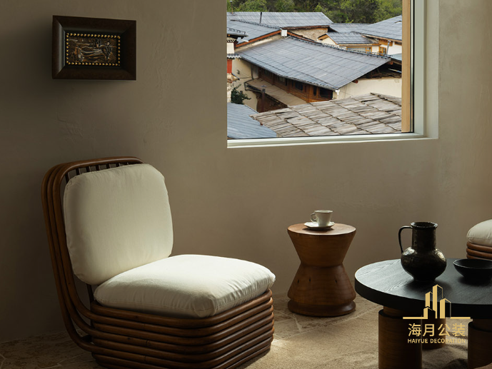 这里是古茶马古道的途径点,大堂是在原有的院子里面加建的,和半开放的过厅连在一起,通过装修设计结合本地回收的石头,松木板等材料做出了一个歇马饮茶的空间。建筑场地空间有限,几乎三面都是和邻居接壤,通道开窗是恰到好处的避免相互打扰,但是把外的旧有面貌呈现在过道之中。人的游走代替了云的飘忽,通过云的变化的的间隙透出去看到外面的一隅,就像装修设计中室内的开窗恰到好处的把外面的部分景观和室内做好了融合。楼顶做了20平米左右的预约制私房餐厅,在靠近大佛寺的同时俯瞰整个古城。