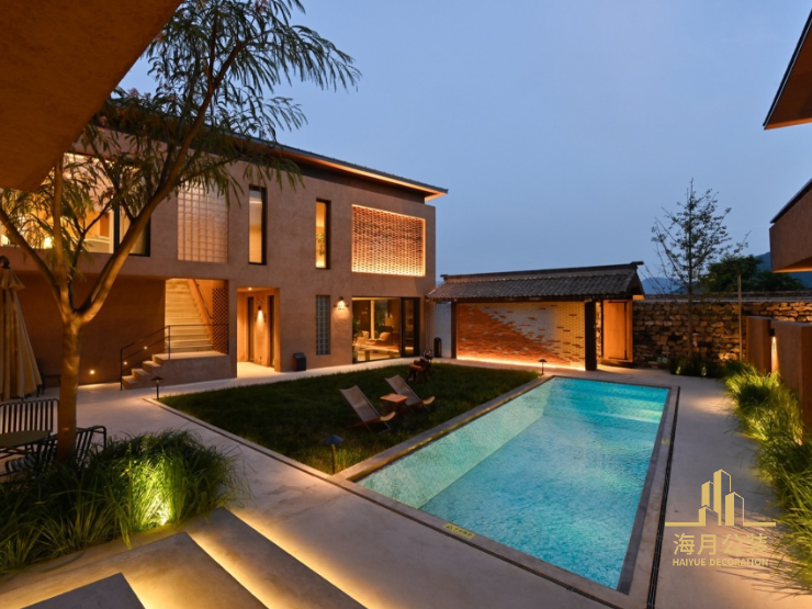 在房间的划分上,为了增加房型的多样性,弥补部分房型在景观视野上的不足,我们在一层的房间空间设计了入户庭院和泡池,平衡冬季运营需求;二层由连廊进行贯穿,形成空间上串联的同时,在露台上亦能拥有最佳的景观视野;六号楼西北侧的空间由于位置及光线的限制,设置为LOFT儿童房,不同的空间类型带来更多的居住选择。中间围合而成的庭院被划分成泳池及草坪两个区域,可以兼顾露天活动的举办以及孩子夏天戏水的需求,自发的形成聚合效果;泳池上方做移动滑盖,盖子合上后连同草坪一起形成一个完整的平台,可以举办婚礼、手作等公共活动。