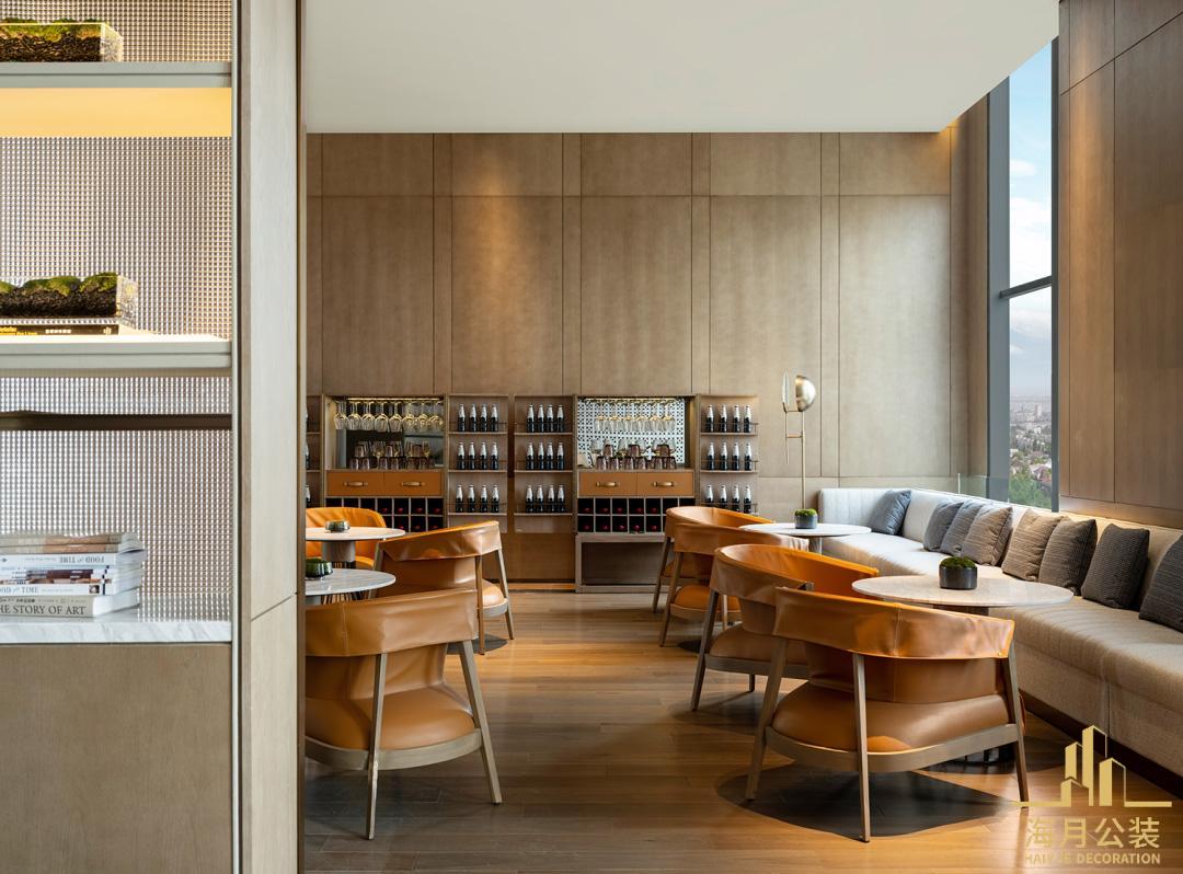 工装设计同样可圈可点。无论是全日制餐厅还是特色酒吧,都拥有良好的采光条件。大面积的落地窗将户外的自然光线与成都的城市或自然景观引入室内,视野开阔通透。装修风格延续了整体的现代感,餐厅内的餐桌椅造型时尚简约,金属与木质的组合展现出工业风与自然风的融合之美;酒吧区域则通过吧台的曲线造型、灯光的层次变化以及酒架的艺术陈列,打造出适合社交和用餐的惬意环境。餐具与餐区布置尽显精致,从餐盘的花纹设计到餐垫的材质选择,都经过精心考量,与整体装修风格相得益彰,让每一次用餐都成为一场视觉与味觉的双重盛宴。