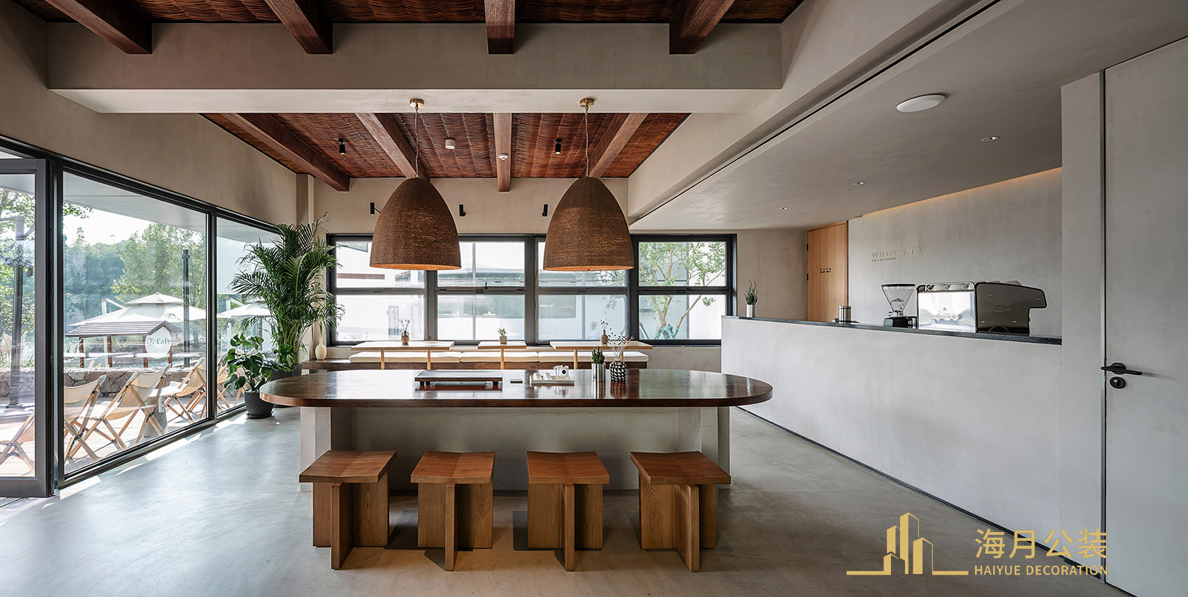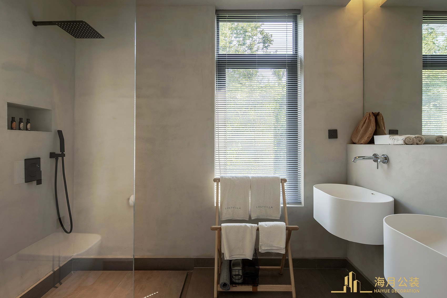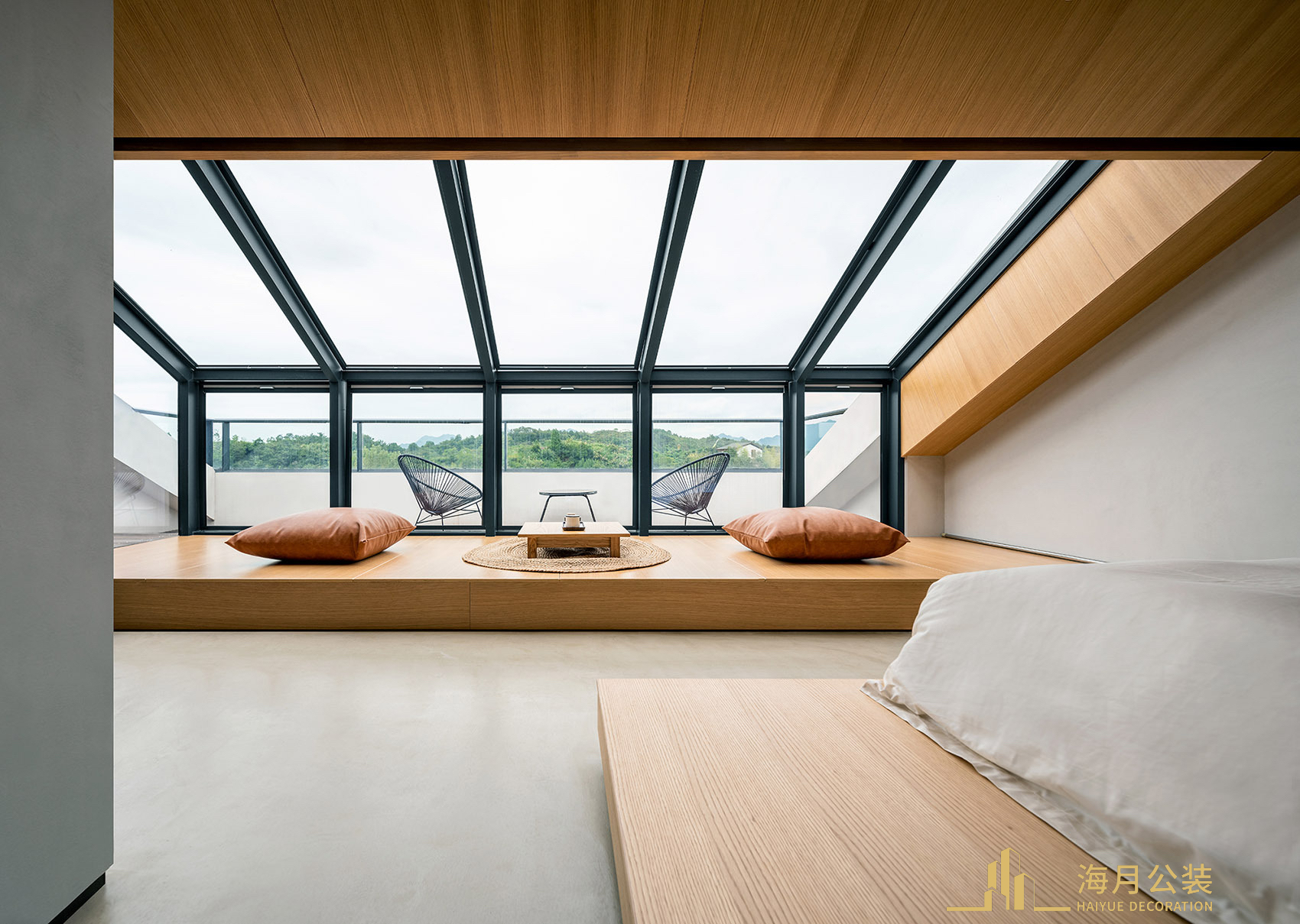 在形式操作的层面,以装饰性的手段将所有建筑工业化的表达抹去,没有结构的暴露,也尽可能隐藏了机电的痕迹,平整的天地墙将空间的高潮引向窗外的自然本身。在材料操作的层面,用质朴的黑白灰色调与木材回应原始村落的记忆。不过分强调设计感也不刻意回避当代性,一切以和谐的氛围为主旨。在器物选择的层面,恰当合用是判断的标准。在最大限度精简的前提下,满足功能使用上的舒适。在执行这些操作的过程中,外部环境自然而然地成为了整个空间体验不可割裂的组成部分,而这种存在形式也恰好构成了对在地性的回应——剥去窗外的千岛湖,空间就不是完整的;而不同状态的外部环境又反过来赋予了同一空间几乎完全不同的性格。最终通过这一系列主动规避的过于主体性与竞争性的设计操作,空间与自然达成了礼貌的沟通与互相渗透的平衡。