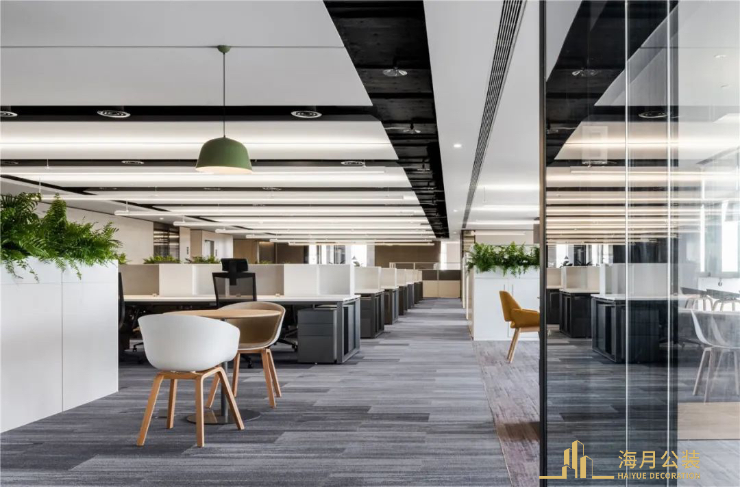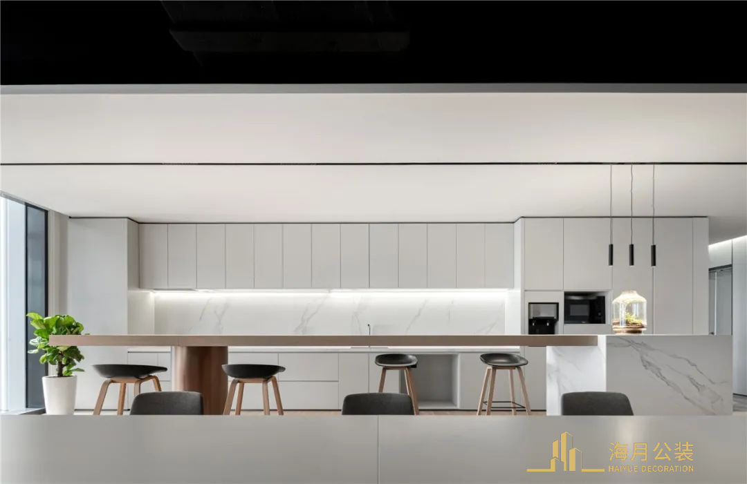 公司作为一个协同体,企业需做出的最重要决策,便是其如何将办公空间构建为一个“平台”。在其中培养着日常生活状态,分享工作和日常,延伸出更为有趣的生活方式”。于企业而言,办公空间是展示企业实力与品牌形象的最有力武器。一个合格的办公空间,在稳定员工、保持高效产出的同时,还能在客户到访时辅助与推动合作达成。而作为员工,动静结合、张弛有度的办公空间,能够兼顾协同工作的开展与深度工作的独立。功效单一的办公空间正在被摒弃。让办公,不单单只是办公本项目为YuQiang & Partners为国内某综合型地产公司打造的自用办公空间。作为内地最具实力的商业地产开发商之一,这里对空间本身绿色健康、人文关怀及赏心悦目的功能实用性的重视,更甚于表层环境的浮夸装点。项目位于深圳南山科技园核心地段,建筑面积5400㎡、实用面积约3600㎡,双层开阔、四面通透。我们根据不同空间的需求进行功能性合理划分:东南一侧为开放大办公区,优秀景观资源在视觉的角度调适员工工作时间过长、强度过大会带来倦怠感。西面侧重共享与休闲功能,包含会议、展示接待、独立休闲、餐厅水吧等,是兼具安静私密人文关怀绝佳场所。交互。