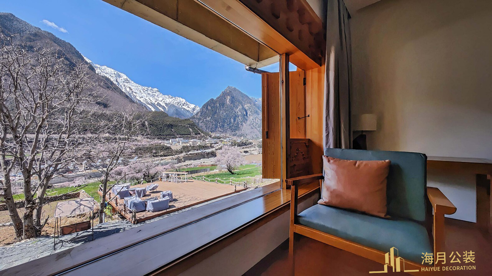 雪山下的碉房—西藏嘎玛溪卡民宿地处念青唐古拉东端的尼屋乡,相传为莲花生大师藏起来的净土——乌金贝隆。尼屋乃秘境之意,冰川上的融雪穿过村庄,传统藏族碉房、宁玛派白塔、青稞田、桃花林,形成了一幅天然的画卷。与林芝气候相似,尼屋聚落呈现工布地区的建筑样式,由石砌而成的藏式碉房建筑组成。结合二层结构,自下而上的收分墙与以及坡度较大的屋顶是藏式碉房建筑的构造特点。随着G349成为小众自驾进藏人群的新路线,这条古老的川藏中线也被重新激活,尼屋乡正处在这一重要的节点位置上。当传统村庄的居住、生产、生活方式改变,尤其是当游客开始进入到这个原始村落,当地村民与外界接触越来越频繁与紧密,新的需求与当地民居建筑的构造体系出现交集。本土新建民居中呈现出许多均质化的趋势,比如蓝色的彩钢顶的出现,传统的木制檐口巴苏构件被彩色的塑料构建所取代,水泥砌块砖替换传统石材等等。现代建筑元素正慢慢地附着在原先特色鲜明的地域建筑。传统民居取而代之的是更加廉价、标准化的建造方式,以及其被表面涂装的一些当地文化符号。由于新建筑的场地被本土民居所围绕,即在聚落生态中建造新藏式建筑,设计需要在新与旧、传统与当代、手工与工业之间找到某种平衡。首先,嘎玛溪卡的建筑形体学习并顺应了尼屋当地的5º收分墙的传统,用现浇混凝土方式进行剪力墙结构方式的砌筑。其次,结合保温和耐候性较高的铝镁锰板坡屋顶形式,回应蓝色彩钢顶的强势,纪念逐步被替代的传统屋顶。再者,创造内外两个交通系统,进而沟通传统与现代的生活理念。利用这三个设计概念,新建筑试图创造一种“熟悉的陌生感”,以此来回应之前所提出来的三个平衡的问题。藏族民居建筑中佛堂为空间布局的中心,以此来呈现佛堂是藏族人心中的精神寄所的重要地位。嘎玛溪卡建筑中与二楼露台连接的空间被设计成为一个现代感的佛堂,是整个建筑空间的几何中心。在藏族传统文化中,楼梯具有非常重要的精神含义,楼梯越陡说明快速通往天界的意义就越浓厚,对于修持者而言,一步登天当然是最好。将楼梯修得尽可能陡,便于尽快通天,尽快步入净土。建筑内部每层都设置了公共空间,并且可以直接与户外露台连接,形成内部与外部双交通系统。内部交通楼梯强调功能性与便捷性,外部交通突出体验性与交互感,塑造一种可以被游历的建筑立面体验。这种双交通的空间系统为远道而来的游客创造了更多见面与驻足交谈的机会,也成为闲暇时间村民休闲的开放场所。如果说在藏式建筑中佛堂是精神生活的中心,那传统的火炉和烹饪就是世俗生活的中心。嘎玛溪卡的厨房与用餐区在一层的西侧最核心的位置,作为民宿主人与客人们聚餐交流的场所。在原藏式民居基础上历时三年新建而成的嘎玛溪卡提供了九间大小不一错落分布的民宿房间,每个房间面向独特视角的自然景观。大面积的采光玻璃,将建筑对面的雪山、河谷白塔景观纳入室内。阶梯型的土色碉房空间形态,让建筑在获得不同景观视野的同时,自身也成为村落景观的一部分,成为旅途中的人们从G349国道路过于远处半山腰的一处灯塔,传递着一种光明、开放的空间精神。