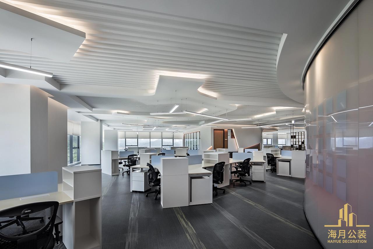 材质选择上,设计团队以“简洁感+质感度”为核心逻辑。大面积的白色哑光板材应用于工位、柜体,奠定空间的现代简约基调;灰色地毯的铺设,既提升了空间的高级质感,又通过软性材质弱化了办公空间的冰冷感。局部点缀的金属框架、木质元素,为空间增加了层次与温度;玻璃隔断的使用,则让各功能区在视觉上相互渗透,保障了430平空间的通透感。