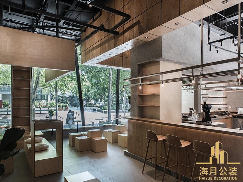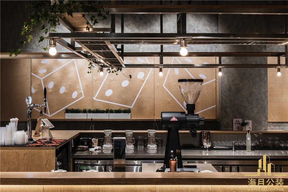 建进息啡厅,材后带来的视觉与觉冲击率先袭来。水泥增面保留着质朴的原始肌理,仿佛在诉说岁月沉淀,那粗植质恶与金属天花板架构,灯具形成强烈对比。金属的硬朗练条,如刘天花板纵搬交错的支架,勾轨出空间的工业概架,冷测中透着理性装序:简约金属灯县暴于上空,散发出冷静光芒,强化工业氛围。而本材的运用,见威为空间的湿柔调刑,吧台,柜体与座椅均采用混润木材,自然纹理与柔和色泽,中和了水泥与金運的冷硬,三种材质相互碰播,互补,塑造出独特目富有层次的质感基底,让工业风不再单调冰冷。