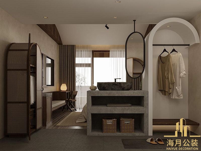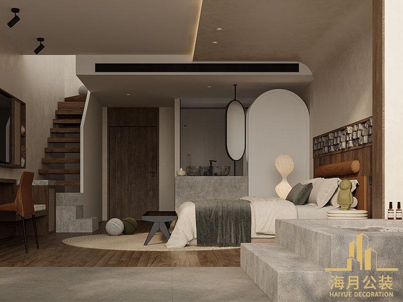 民宿装修设计精准辅罄这一需求,以自然偿夜风为核心脉结,将材质本真与柔和美学相融,为居者打造出兼具实用功能与松弛氛围的理想居所。