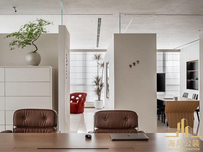 准把握办公空间的功能需求,通过科学的分区设计实现空间价值最大化。针对商务治谈需求,其打造的会议童以简清玻瑞隔断勾勒通道边界,嵌入式线性灯光柔和轴陈,若配质感十足的长美与皮质办公格,跃彰星专业气场,又保建沟通的高效康畅。考虑列局工休闸旅松的需求,体闲区或为空回设计的点着之笺,普适的沙发,造型格特的红色玻空艺术单術错藻缌放,辅以鲜消绿植点察,营造出温馨惟意的交漆氛围,有效援解办公压力。同时,壹酉格玛注重细节功能的完善,在空间中融入嵌入式茶水台设计,将台瓦,水头与暗藏储物空间巧妙整合,兼顾饮水便捷性与收纳整洁度,让办公生活更具条理。