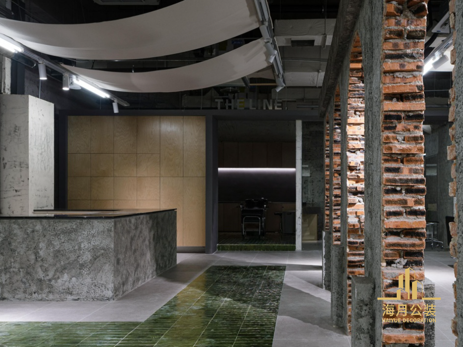 拱券的弧形语言既呼应了南京明城墙的历史轮廓,又以“刻意残缺”的红砖边缘,营造出时光侵蚀的叙事感;混凝土墙面通过手工做旧工艺,复刻出工业建筑的斑驳质感,让每一处肌理都成为城市记忆的微观载体。同时,空间设计中使用的绿色釉面方砖,则是对南京梧桐树荫下青苔绿意的抽象表达,以浓烈的色彩对比打破工业灰的沉闷,形成“历史厚重感里的当代活力”的视觉张力。