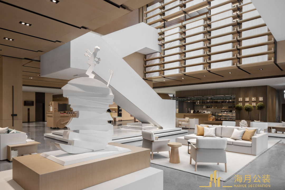 为寻求平衡的独立旅行者提供轻松舒适的体验 。而我们装修设计的使命,是将这一理念转化为可被感知的空间革命。酒店大堂以挑高格局拉开空间气度,深蓝色格栅墙面与木质陈列相互呼应,艺术与生活在此交织。大理石与木色前台映衬着柔和灯光,精致而大气的装修设计语言,不仅彰显出现代酒店的质感与格调,也让人与空...