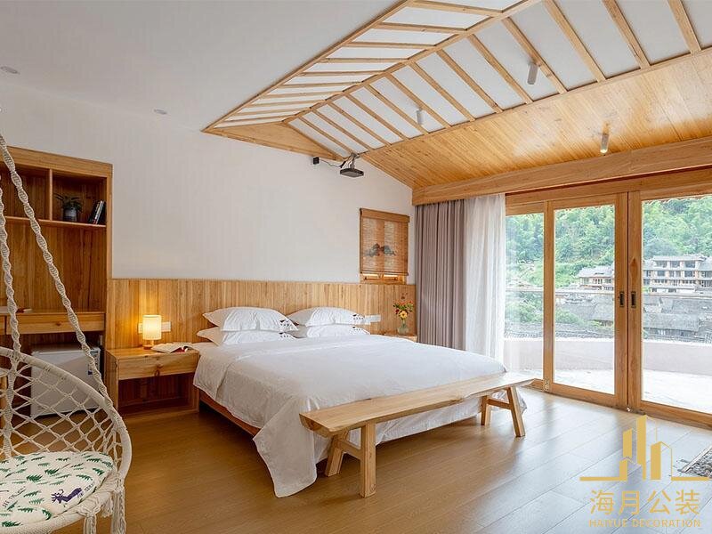 民宿设计空间,视线会先被屋顶裸乘的木梁吸光影,让"自然"成了空间的底色。