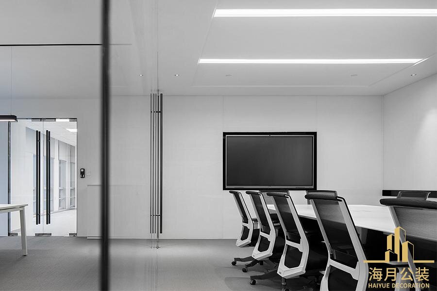 办公室装修内,精心规划了会议室,洽谈区,休闲区等多元功能空间,以应对不同场景下的办公需求。会议室采用可调节的智能影音系统与灵活拼接的会议桌,既能满足小型团队的头脑风暴,也能承接多人参与的商务会议,玻璃隔断上的磨砂贴膜设计保障了会议的私密性,同时不影响空间的采光效果。洽谈区则以柔和的弧形沙发与质感茶几为主角,搭配暖色调的灯光与柔软的地毯,营造出轻松惬意的沟通氛围,让商务洽谈在舒适的环境中更易达成共识。休闲区的设计则更注重松弛感,柔软的沙发,简约的书架与便捷的饮品台,构成了一个远离工作压力的"充电站",员工可以在此短暂放松,交流互动,重拾工作活力。
