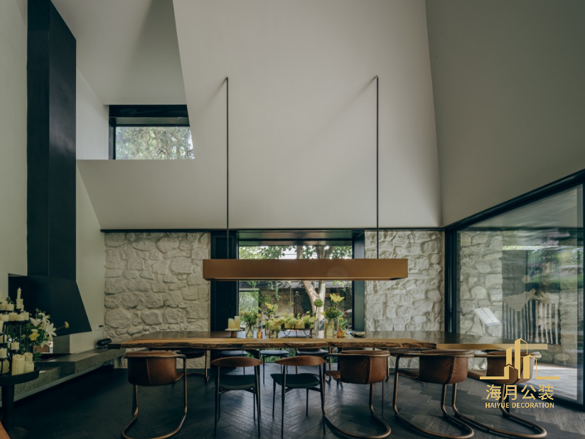 如果说庄园的公区游走在花园与山水之间的一系列动态体验,展示了如何把自然生活方式拓展到山水尺度之中;那么庄园客房最终又把客人的度假生活拉回到宁静的院落和植物里。整个庄园酒店只有六间客房,分布在主体建筑的不同角落,每间客房在装修设计中房型都不一样,但都有一个共同的特点—每间客房都带有一个独享的私密院子和花园。客房的边界在空间设计中不止于室内的落地门窗,院子和花园才是每间客房真正的起居室,触手可及的大树和花草是最生动的软装,每间客房都像住进一个活泼泼的自然天地里。