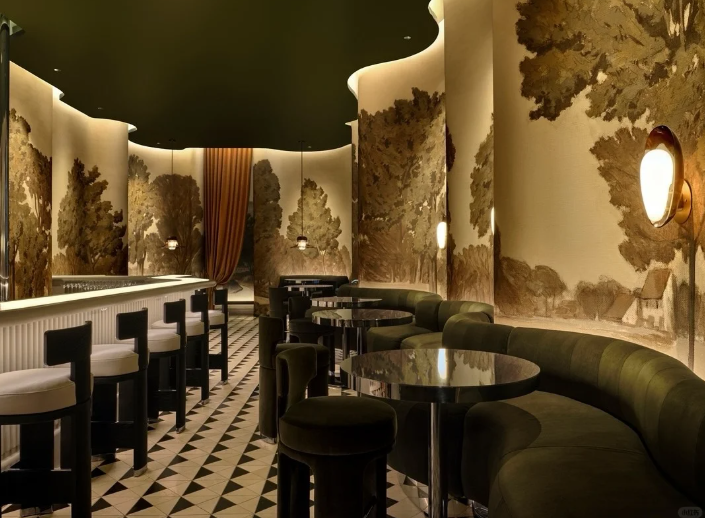 真正的质感,藏在看不见的细节里。吧台上的金属杯架,线条利落且做工精细,摆放的酒杯错落有致,光影落在杯壁上,折射出细碎的光泽;每张桌椅的间距经过精准测算,既保证了同桌的亲密感,又兼顾了邻桌的私密性,让每一位客人都能自在放松。