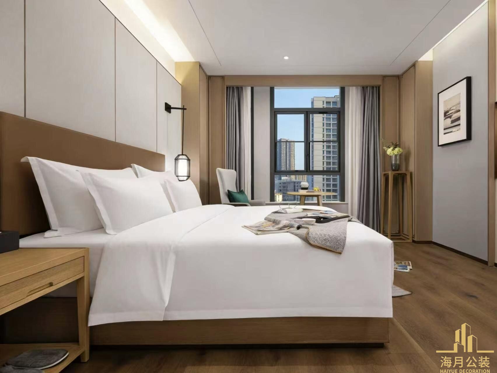在细节构造与氛围营造上,设计同样围绕分区展开。休憩区的灯光采用局部重点照明,床头壁灯与氛围灯带精准打光,避免强光直射,搭配温暖木色床头背景,快速营造放松休息氛围;功能区则以均匀基础照明为主,搭配可调节台灯,满足不同场景下的视觉需求;景观区通过落地窗的低窗台设计,结合软装坐垫,打造出可临时休憩的观景角落,同时通过窗帘与玻璃的材质对比,增强空间层次感。
