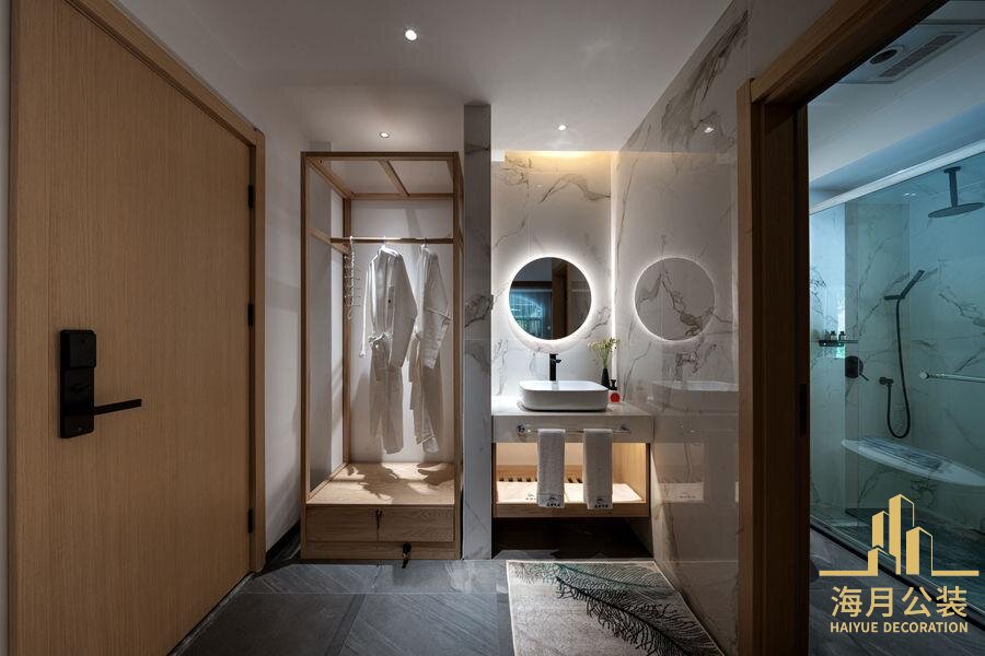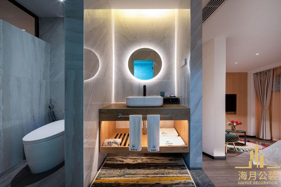 客房以素净色调为底,不同风格的布置各有巧思。柔软大床铺着亲肤床品,搭配简约沙发与艺术装饰画,每一处细节都透着温润质感。落地窗将庭院景致框成流动的画,清晨在鸟鸣中苏醒,夜晚伴光入眠,让休憩成为治愈的过程。