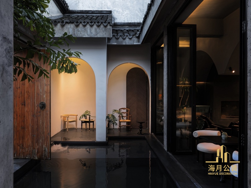 宾临城·江南赋设计师民宿业态是通过将现有建筑进行改造提升,把古镇传统建筑与现代艺术空间融合在一起,通过装修设计打造成集共享空间、展厅、下午茶、泡池、住宿、酒吧、咖啡厅等于一体的差异化超强IP体验高端民宿,设计风格既能体现江南水乡的文化韵味,又能让旅人感受到生活场景化的现代艺术空间。