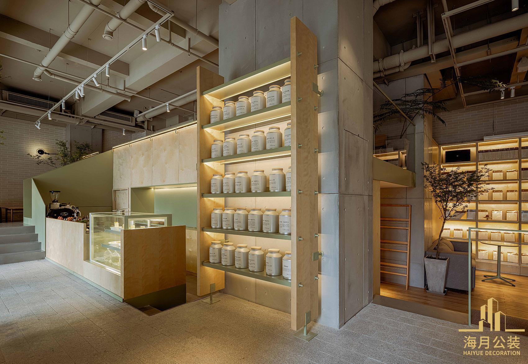 浅木色板材是空间的“温柔底色”。从墙面装饰到陈列架、操作台,浅木材质温润亲和,仿佛把山林间的原木气息引入室内,自带治愈感,契合茶室宁静属性。灰色砖墙与水泥柱,则赋予空间质朴厚重感。砖墙的粗糙纹理、水泥柱的原始质感,保留建筑本真,与浅木形成材质对话。而裸露管道等原始结构的保留,是工业风的巧妙融入,不刻意修饰,让空间多了份随性与真实,三种材质相互映衬,营造出自然又带点不羁的氛围,就像在都市喧嚣中辟出的一处质朴角落,让人卸下防备。