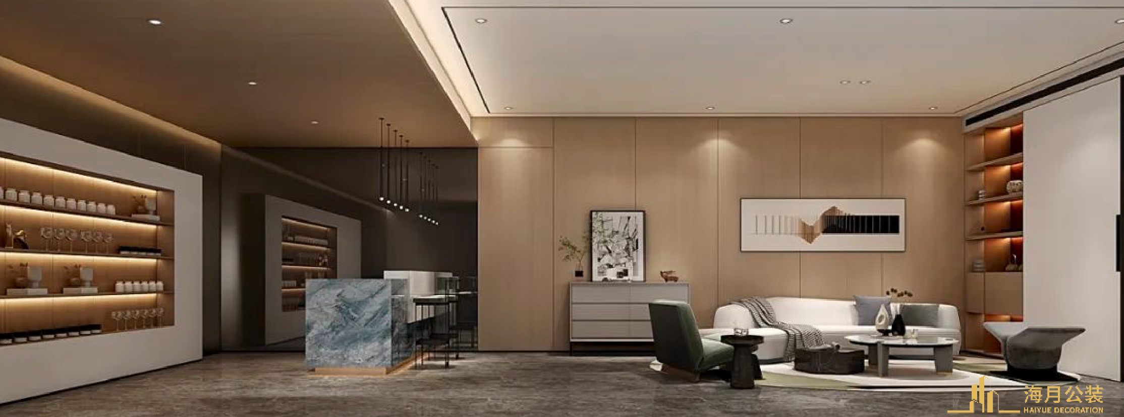 私人会所装修以现代简约风格为基调,融入东方美学意境,打造兼具高端商务与私密休闲功能的