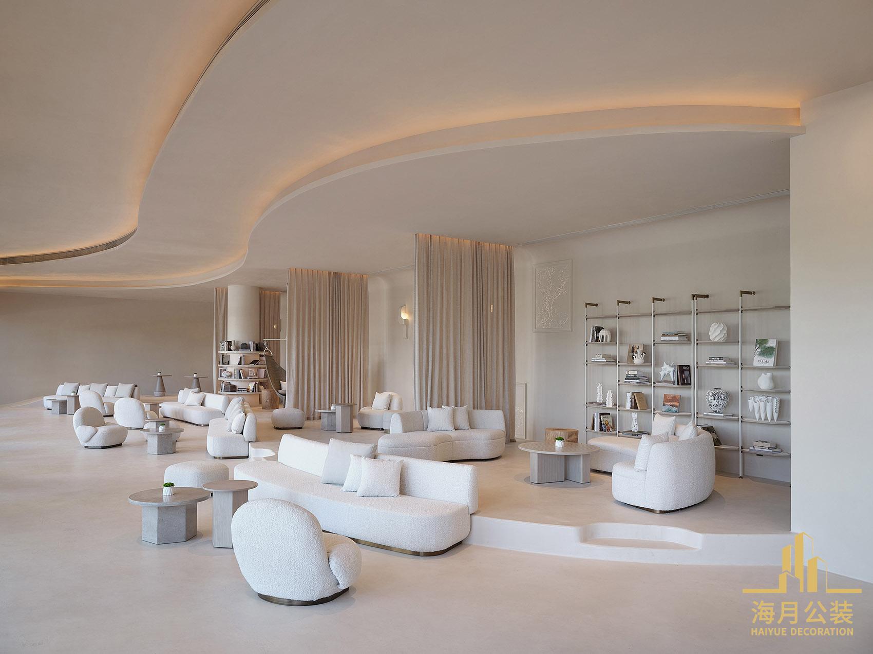公共区域的设计是酒店对外展示的重要窗口。弧形天花板的运用堪称点睛之笔,其流畅的线条打破了传统空间的刻板印象,宛如水波般灵动自然,搭配柔和的灯光,光线在弧形表面晕染开来,营造出富有层次的光影效果,为公共区域增添了艺术感与空间纵深感。家具选择上,精心挑选线条流畅、造型圆润的沙发与座椅,材质上注重质感,触感柔软舒适,既保证了美观度,又为宾客提供了惬意的休憩坐感,让公共区域成为兼具美学与实用的社交、休闲空间。