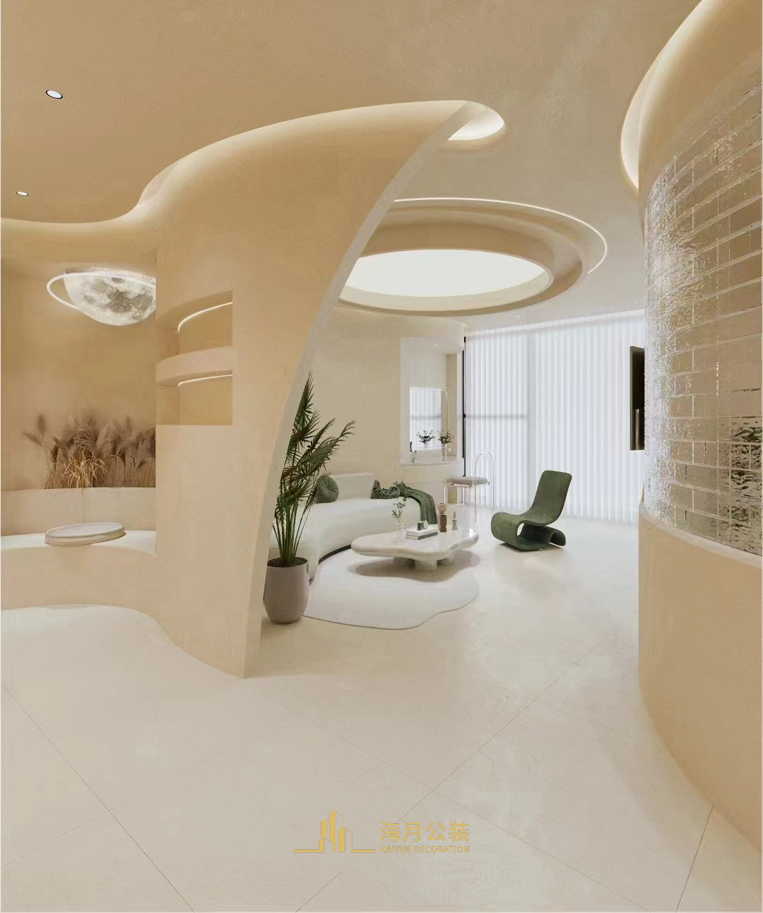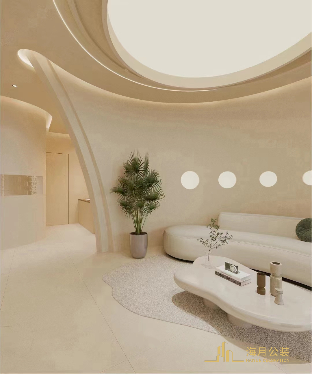 美容空间,即刻被柔和温暖的氛围包裹。整体色调以米白、浅杏与奶咖为主,仿佛一杯精心调制的拿铁,细腻而富有层次。