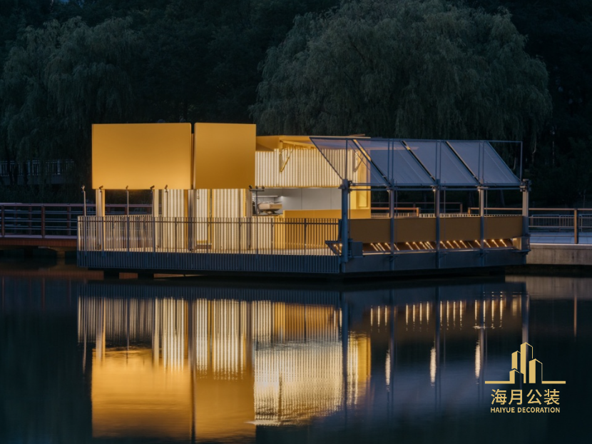 为了尽量减少对原有平台的干扰,项目采用轻钢结构体系外覆铝板,地面铺设竹木材料。主体结构为不可拆卸的整体固定式构造,以确保长期的稳定性与耐久性;与此同时,外立面可开合、可调整的界面系统使其能够在不同的运营场景、季节变化及光照条件下呈现多样化状态。这种“稳固的骨架 + 可变的表皮”的建构策略,不仅延长了建筑的生命周期,也通过装修设计赋予其在城市环境中持续适应与回应的能力。我们希望它不仅是一个功能空间,更是一种可以被持续使用、不断激活的空间框架。