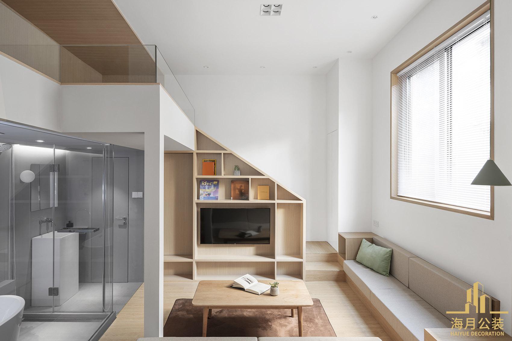 空间利用上,采用了loft结构,这是工装设计中优化垂直空间的巧妙手法。睡眠区被设置在二层,既充分利用了空间,又营造出独特的居住体验。为保障安全,同时不破坏空间的通透感,选用玻璃护栏。玻璃的通透特性,让二层与一层视觉上相互连通,光线能自由穿梭,使整个空间更显开阔,仿佛与山野景致融为一体,旅客在睡眠区也能隐约感受到山下的生机与活力。一层紧凑且合理地规划了客厅、厨房、卫浴等功能区,各区域既相对独立,又通过开放式的布局形成有机整体,方便旅客在不同功能区之间活动,契合民宿作为临时“家”的属性。