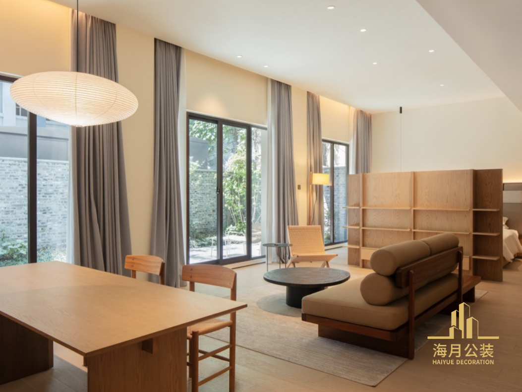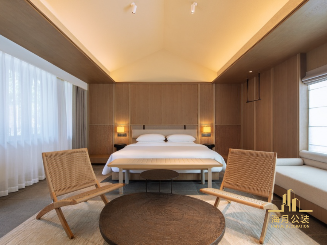 酒店共40间客房。整体装修设计保留并沿用了原有的庭院布局。对于文保建筑的客房改造,设计保留了全部的木结构和外立面,并在内部增加了空调和供暖系统,以及卫生间淋浴间等现代生活所必需的功能。相对开放的布局和简洁的手法也让客房更具有轻松舒适的现代气息。室内材质的选择方面,采用木材,天然石材,手工砖,肌理涂料,夹绢玻璃等自然材质,忠实于材料本身真实的质感,延续文物古建筑的色调和氛围,并借鉴了扬州传统手工艺木版画雕刻和铜器制作技法,进行了本土文化符号提取,使用手凿肌理木板、做旧铜板和木版画作为装饰,向扬州传统文化致敬。